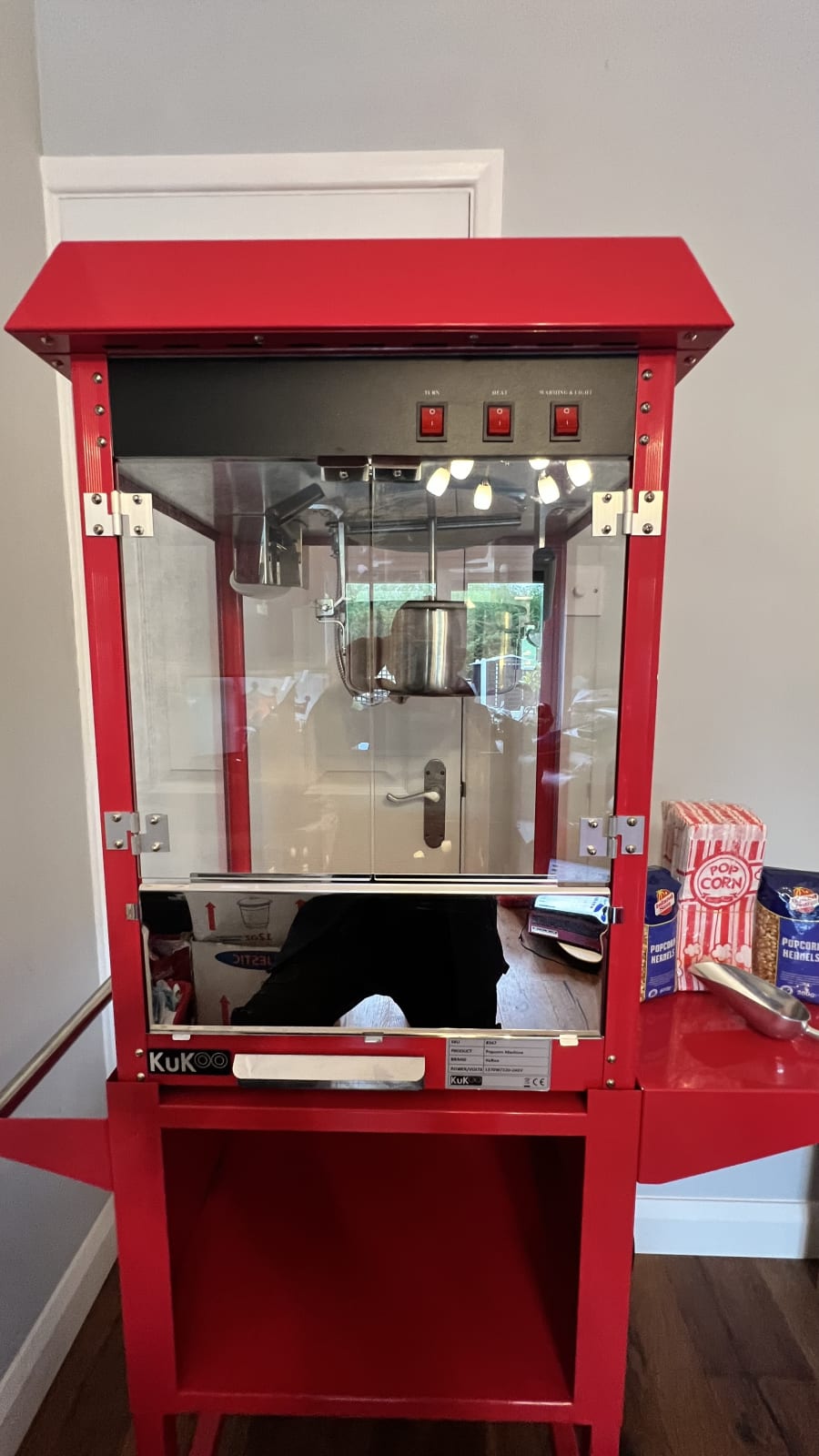- includes 1KG of popcorn kernels and 1 litre of oil for approx 100 servings
