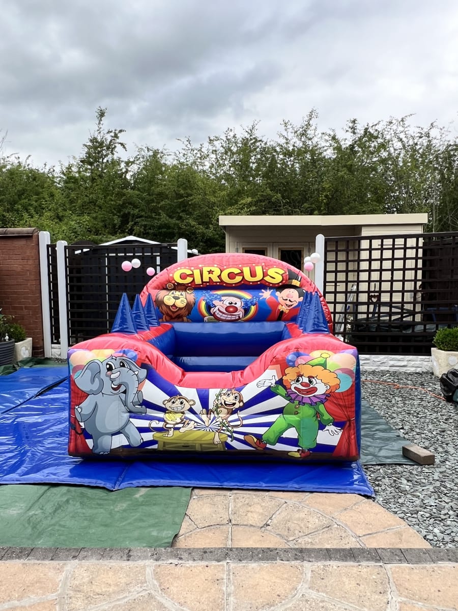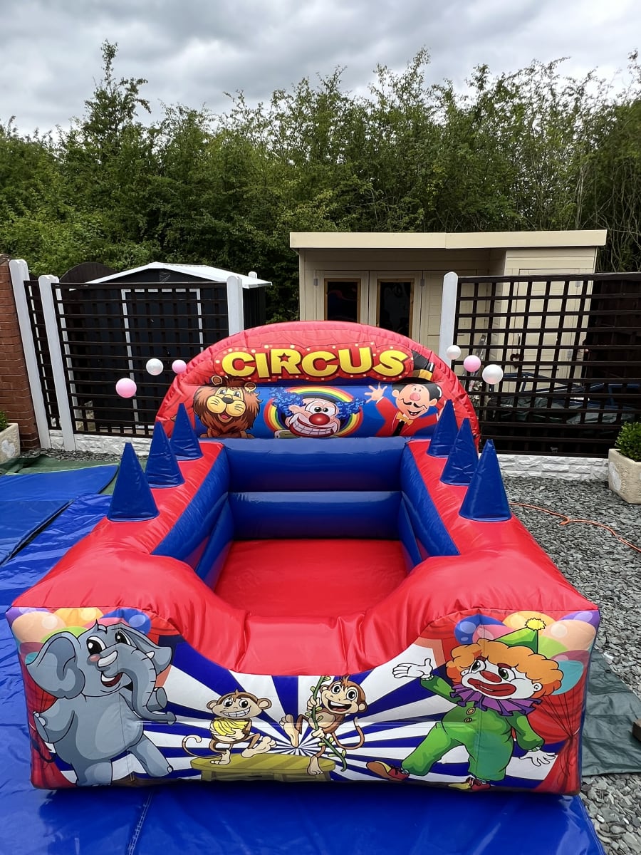 Watch as the floating balls create an enchanting atmosphere, while the vibrant artwork of clowns, cheeky monkeys, and elephants captivate young minds. Suitable for children aged 5 and under, the Circus Air Juggler Ball Pool can stand alone or pair perfectly with our matching soft play sets. For added excitement, it can also be booked with one of our castles, ensuring a day filled with laughter and play!