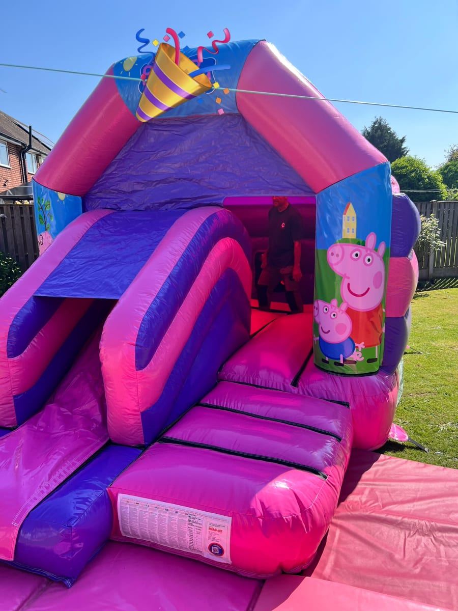 This velcro Bouncy Castle With Slide offers endless fun for all ages with its vibrant pink and purple design. 🏰 Choose from a variety of themes including princess, Peppa Pig, Paw Patrol, football, and many more to suit your event perfectly. 💫
