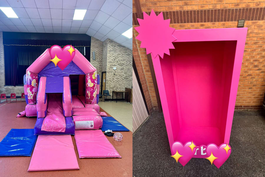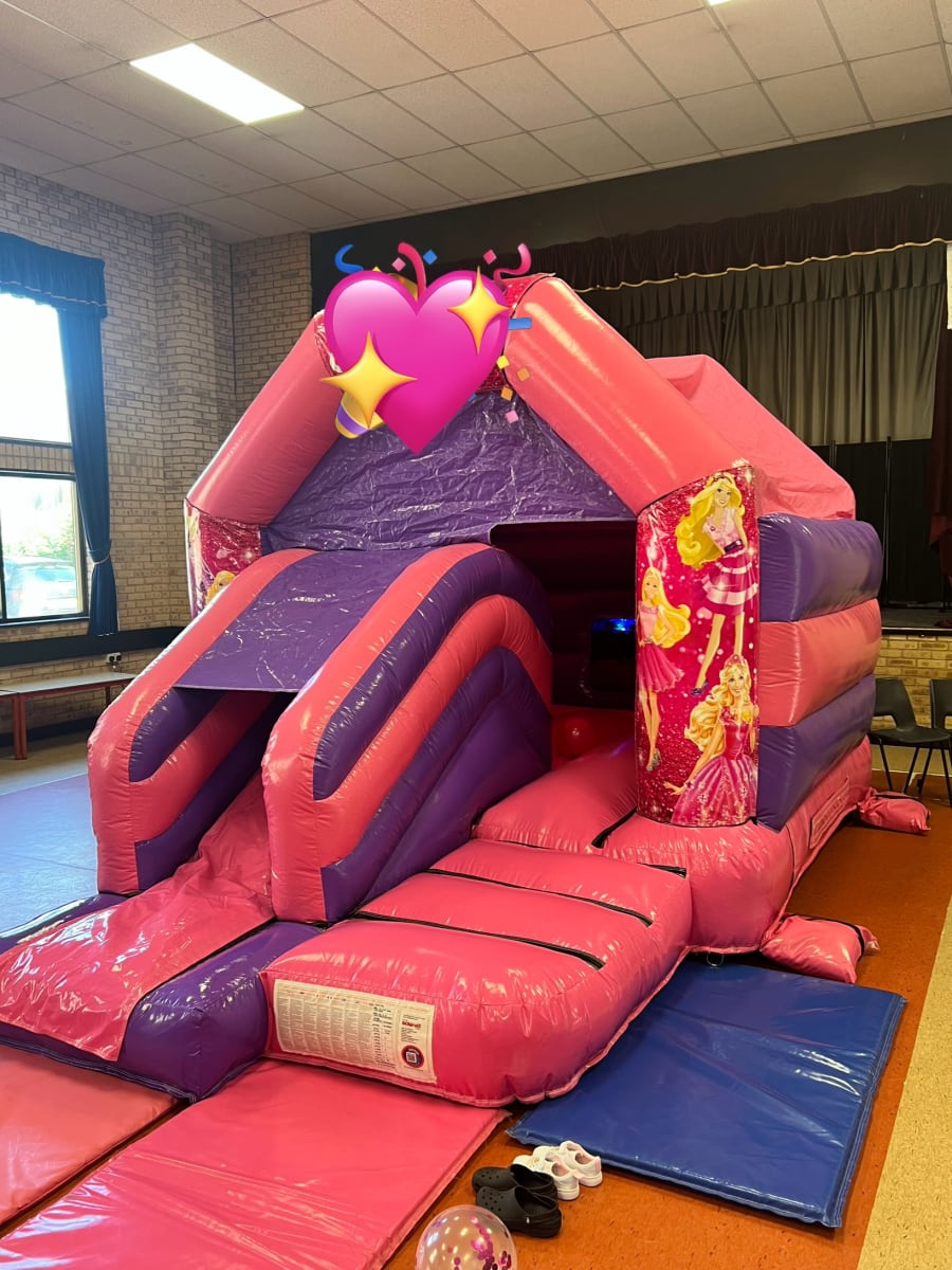 This Velcro Bouncy Castle With Slide offers endless fun for all ages with its vibrant pink and purple design. 🏰 Choose from a variety of themes including Princess, Pink Pig, Paw, Football and many more to suit your event perfectly. 💫